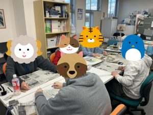 事業所で使うゴミ箱が減っていることもあり、新聞紙を折りたたんで作るゴミ箱を作っています。